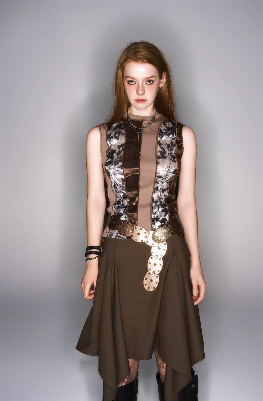 Inspired by earthy botanical tones and vintage patchwork artistry, this tank top captures a grounded yet expressive mood. The fusion of brown-based color blocking and plant-inspired print elements gives the piece a nostalgic, nature-driven aesthetic while maintaining a modern streetwear sensibility. It embodies quiet individuality rather than loud statement.